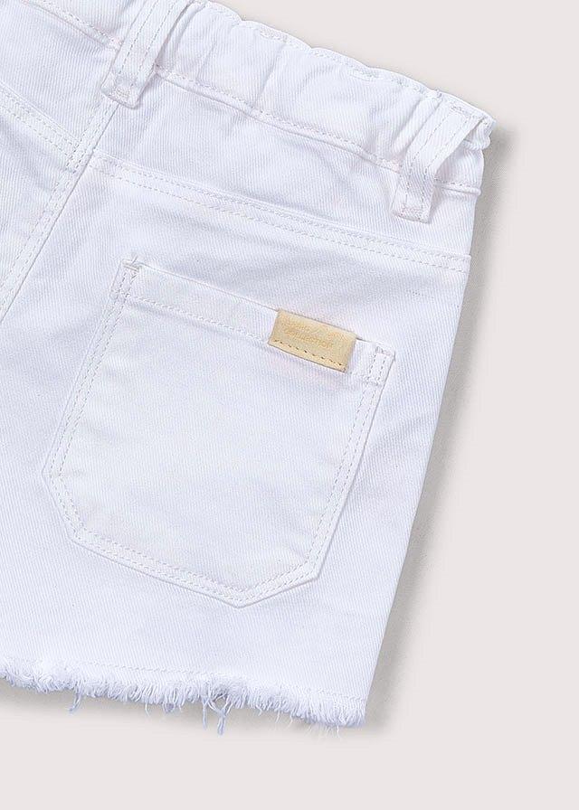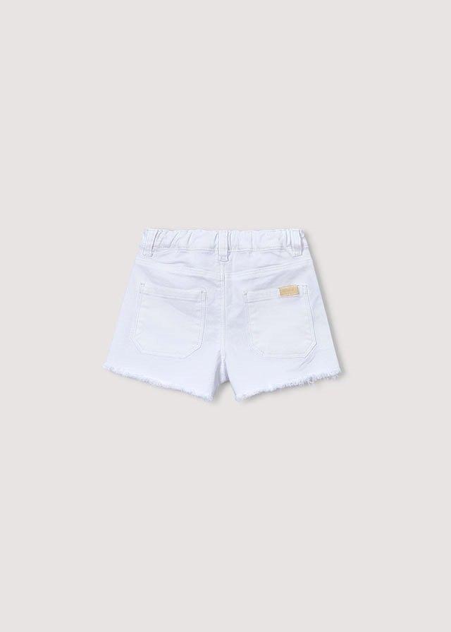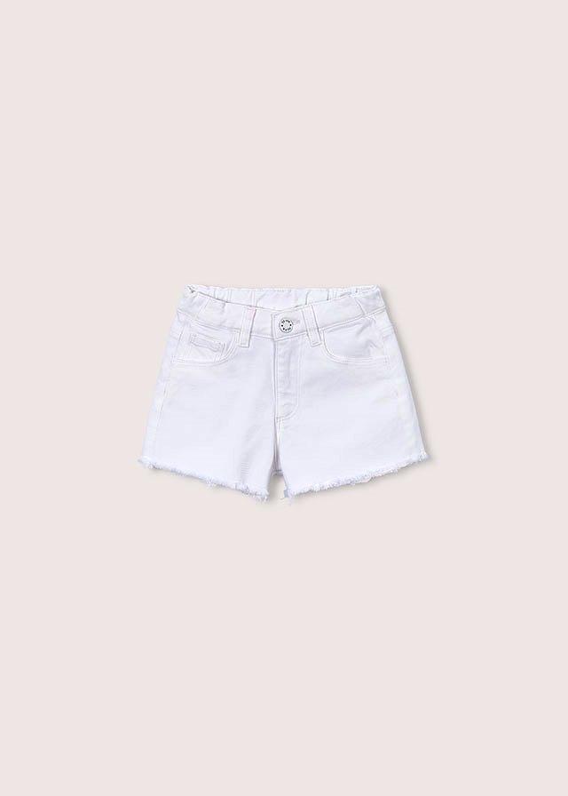 Pantalón corto para niña. Cierre con un único botón. Goma elástica regulable con botones en el interior de la cinturilla para mayor ajuste. Cómodo tejido de sarga de gran resistencia.Color: Blanco
