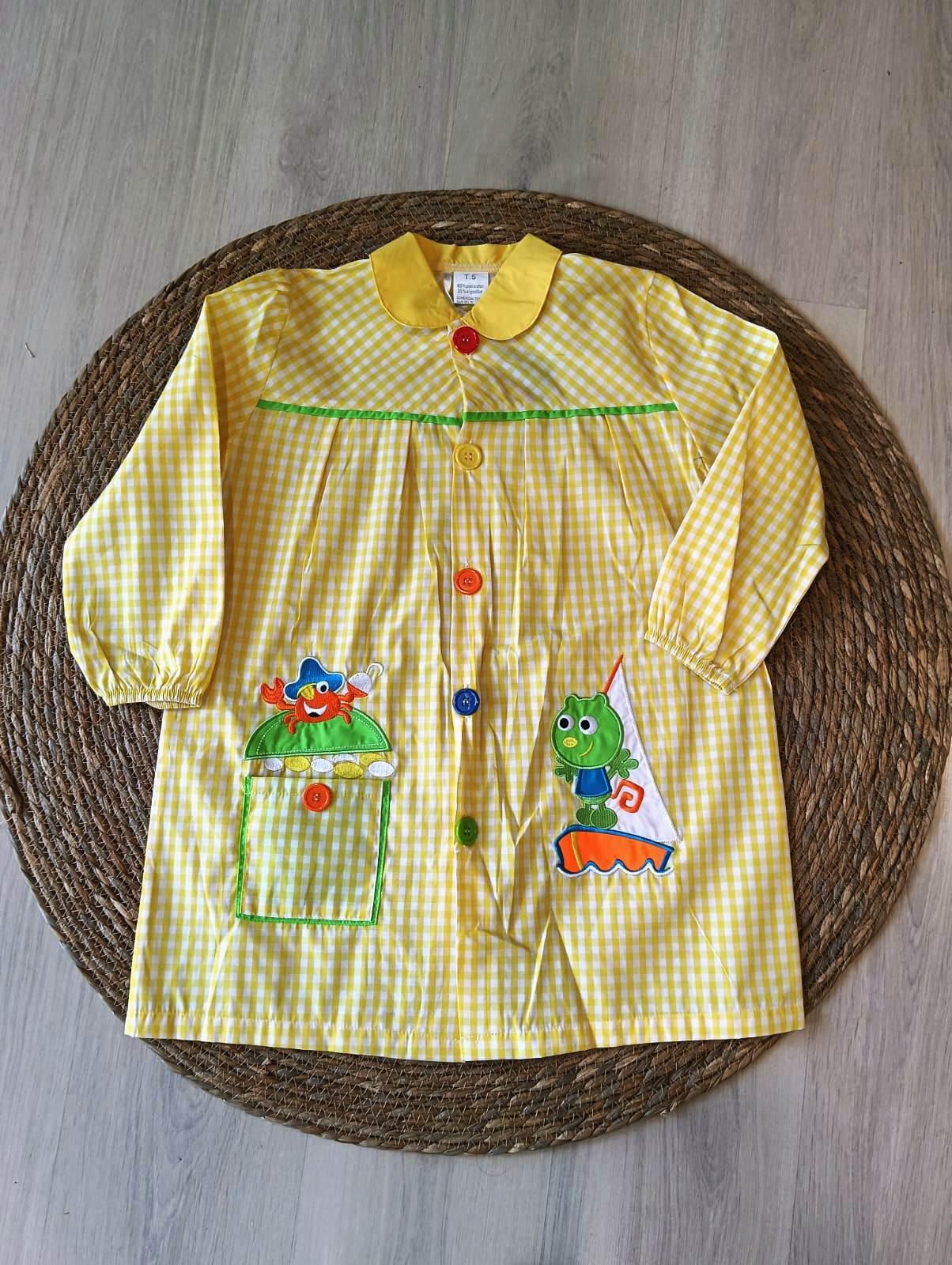 Bata o babi para el cole, con divertidos bordados, botones de colores y con cuello.