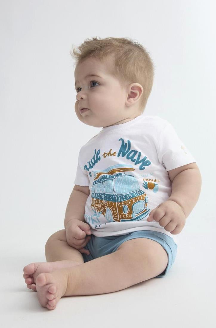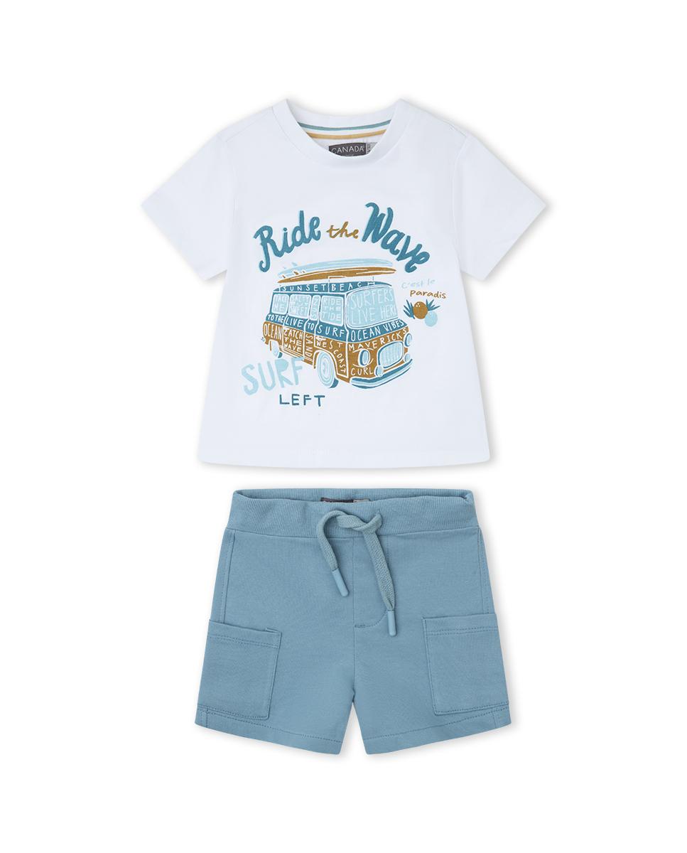 Conjunto de bebé niño,.camiseta de manga corta con dibujo en delantero con bermuda de punto