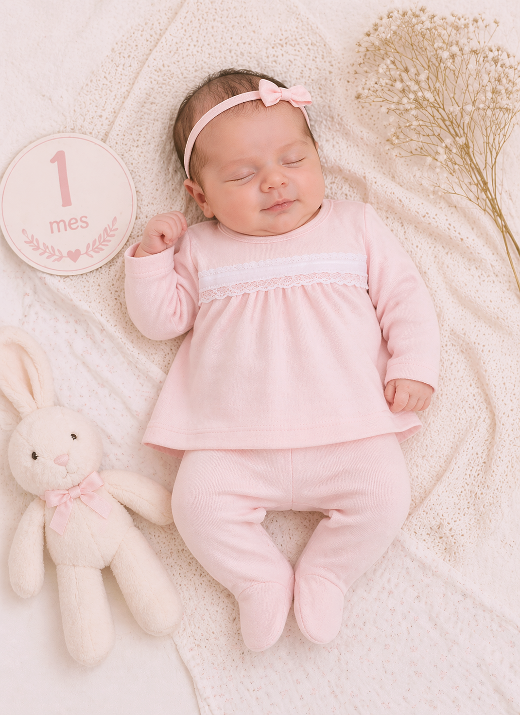 Conjunto para primera puesta, en algodón fino,camiseta de manga larga con polaina