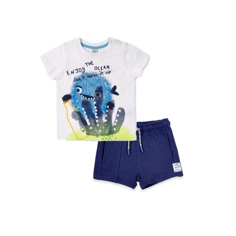 Conjunto niño, Camiseta de manga corta con estampado de la colección y Bermuda lisa con bolsillos.