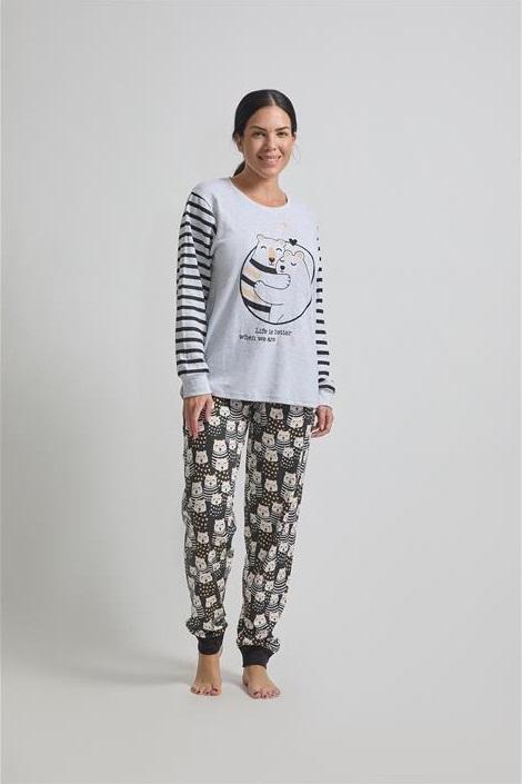 Pijama mujer de algodón interlock, con pantalón estampado y terminaciones con puño