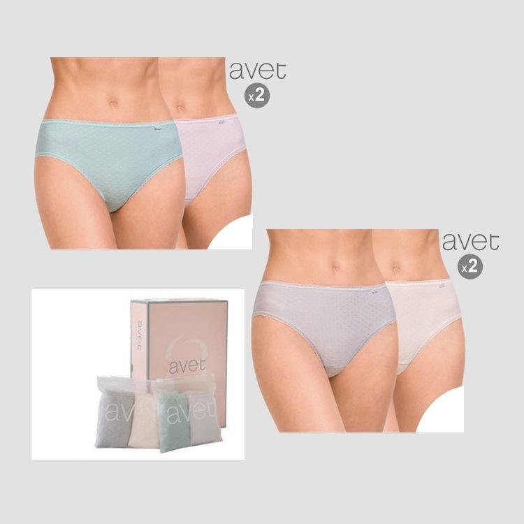 Pack de dos braguitas para mujer, Confeccionadas con una mezcla de algodón, poliamida y elastano que garantiza máxima suavidad y transpirabilidad para un confort duradero, delicado estampado plumeti en tonos suaves y femeninos, con acabado de encaje en la cintura para un toque sofisticado, corte midi clásico con elasticidad óptima que se adapta al cuerpo sin marcar, ideal para uso diario, entrepierna con puente de rizo 100% algodón