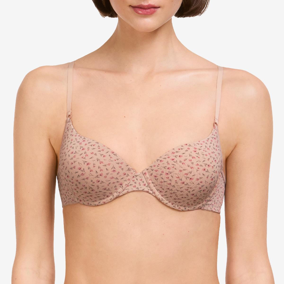 Conjunto de microfibra en original y fino estampado floral, sujetador con aros y ligero foam con braguita bikini