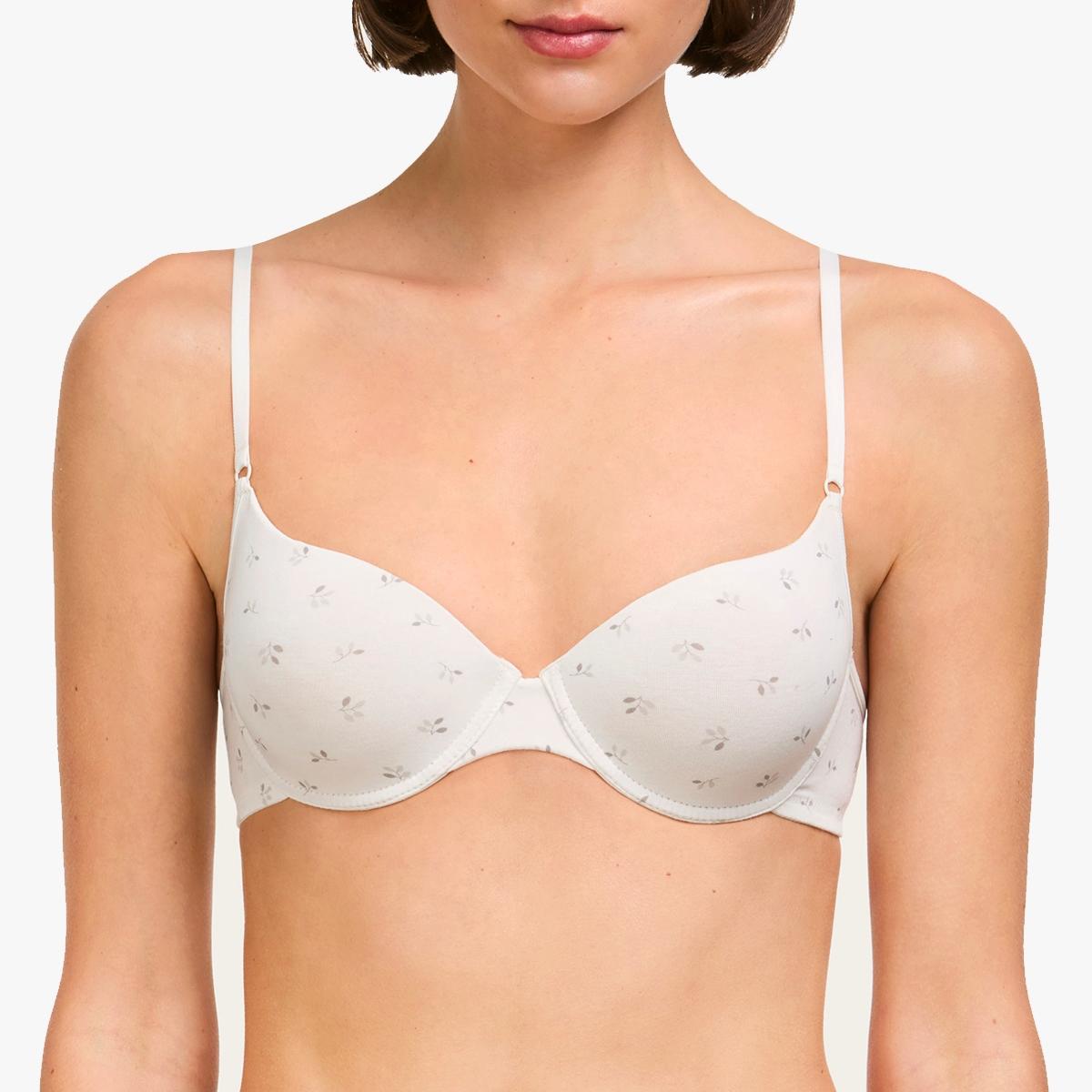 Conjunto de algodón en original y fino estampado floral, sujetador con aros y ligero foam con braguita bikini
