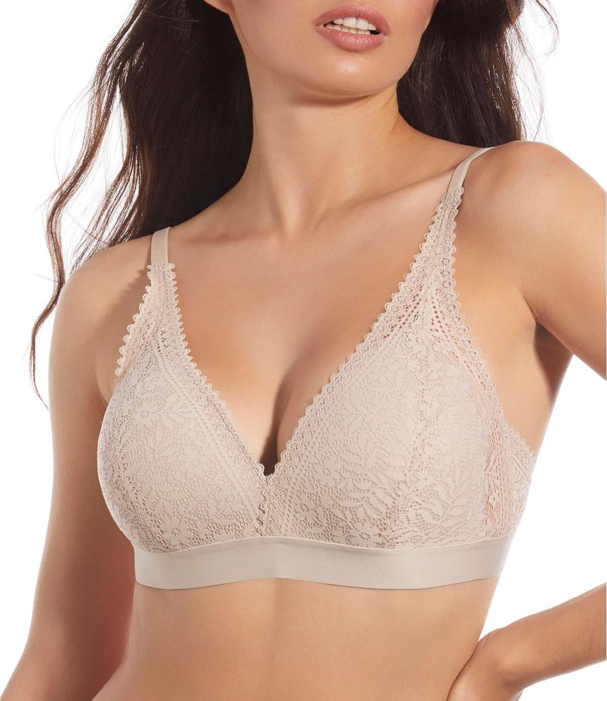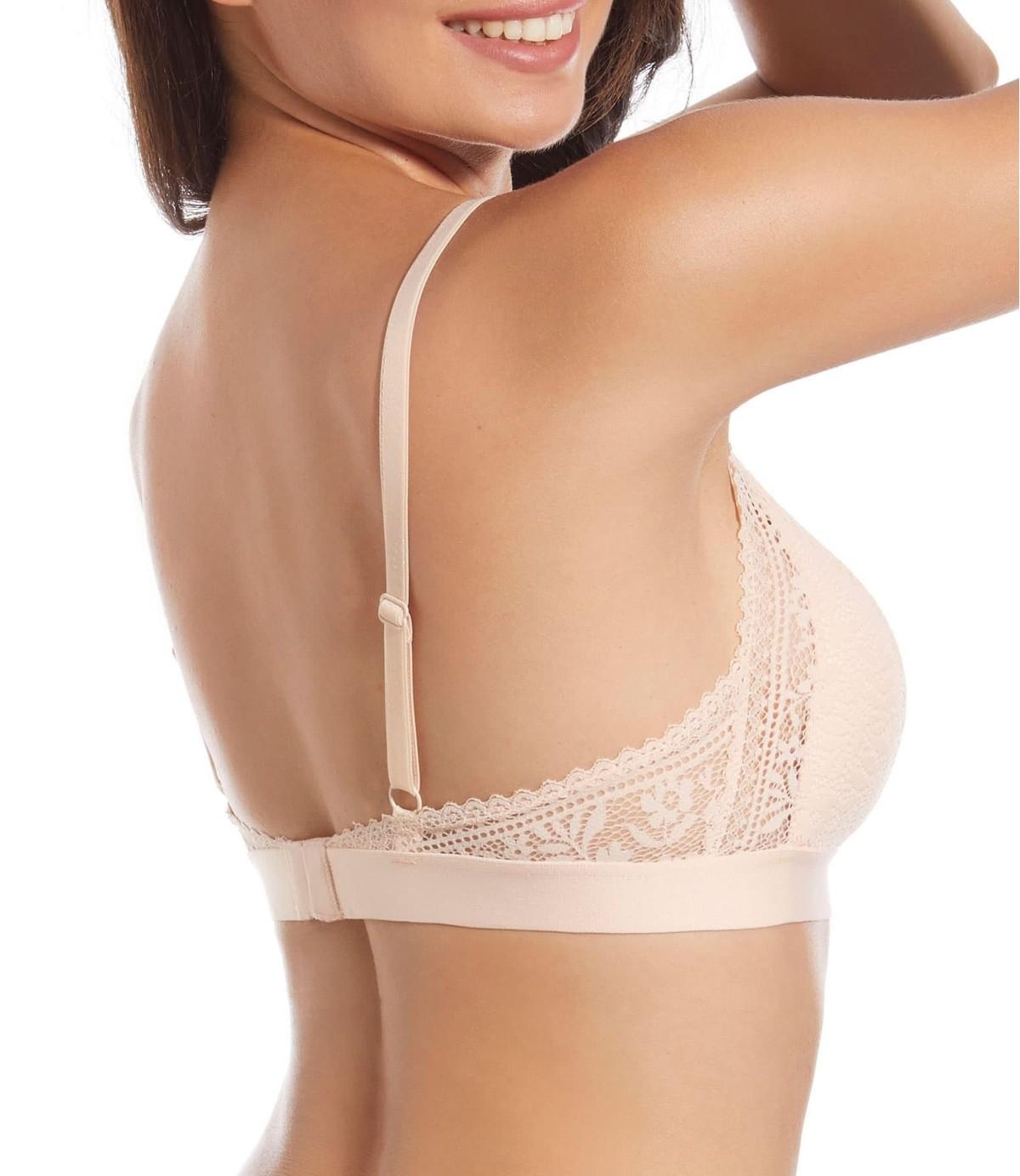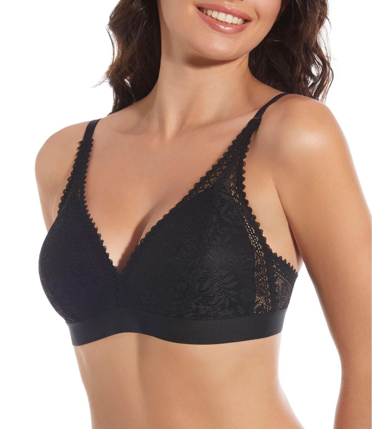 Sujetador sin aro y con relleno confeccionado de fino encaje y forma de bralette. Elegante y muy femenino. Copa B