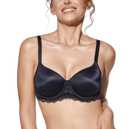 Sujetador de microfibra con aros y copa de relleno con detalle de encaje en el lateral de la copa. Copa C.
