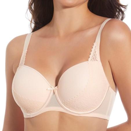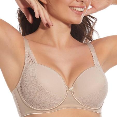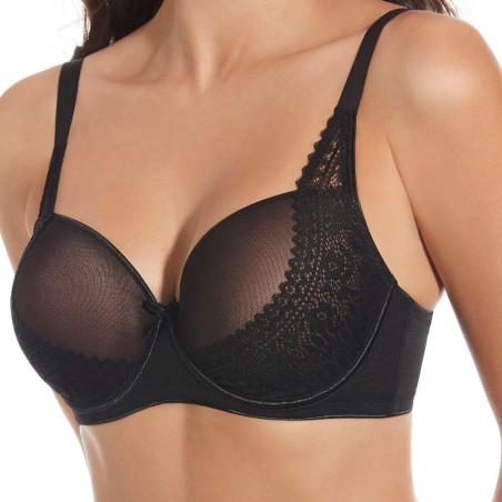 Sujetador con aros y con relleno que combina tules y encajes.. Copa C.