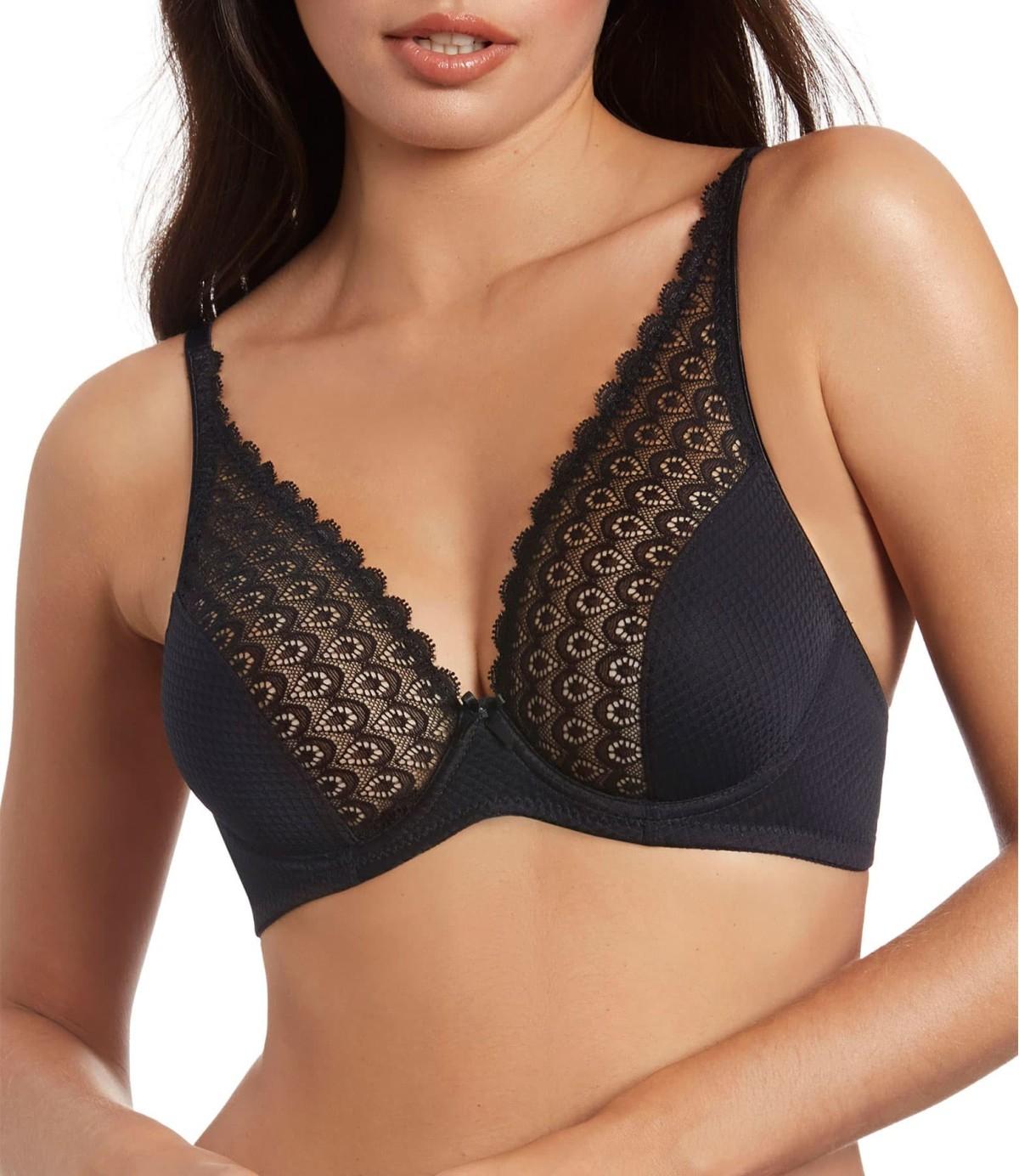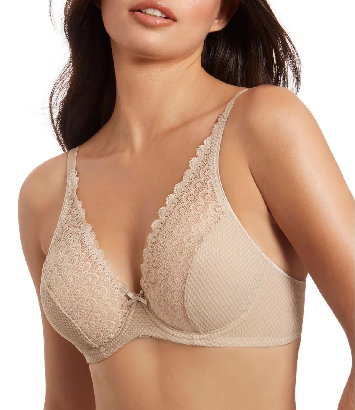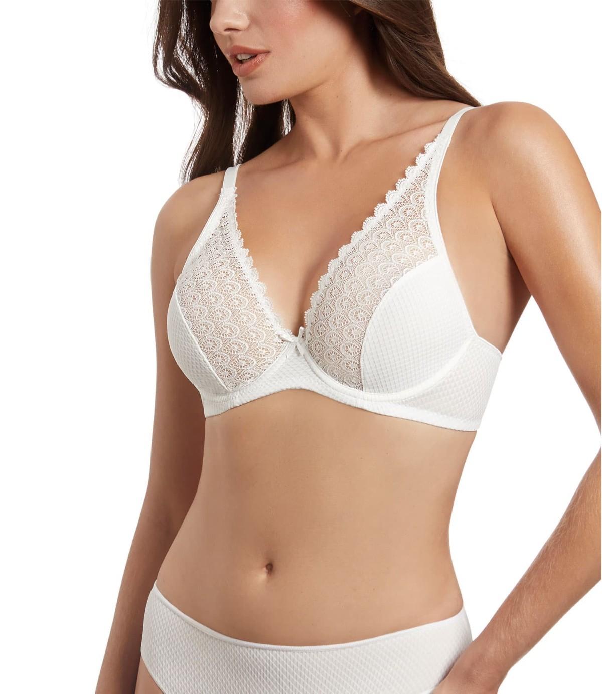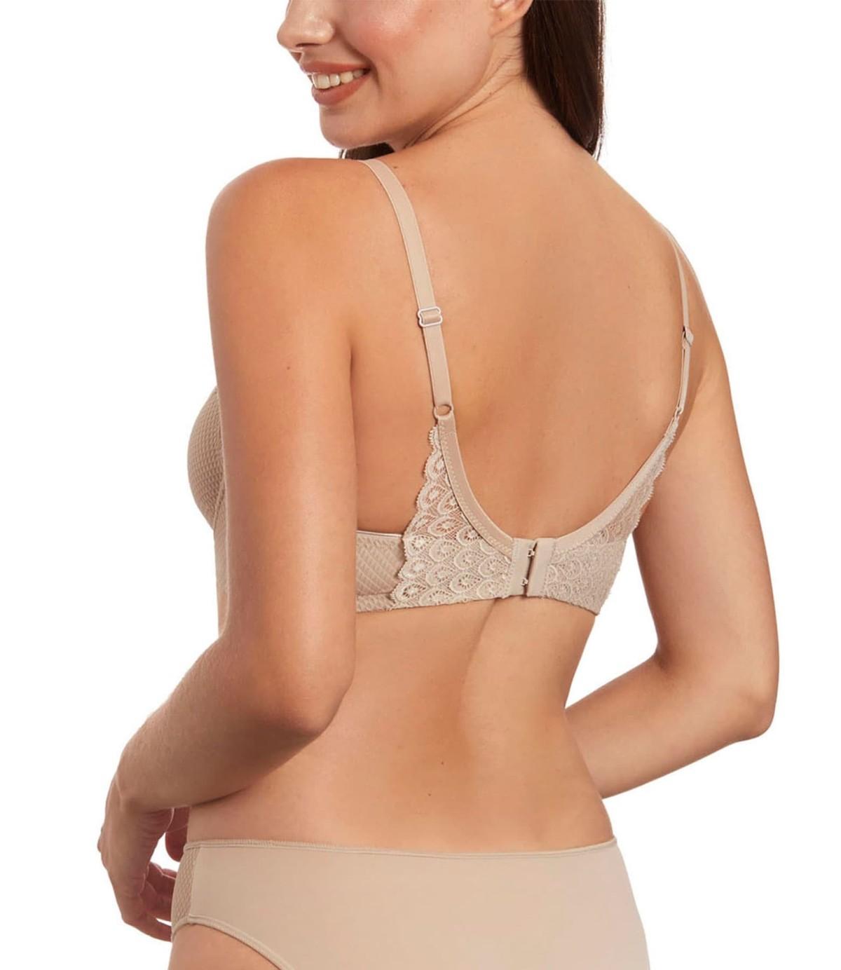 Sujetador con aros y sin relleno diseñado con un elegante encanje y tejido Jacquard.