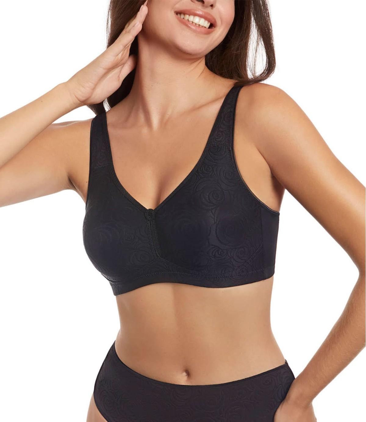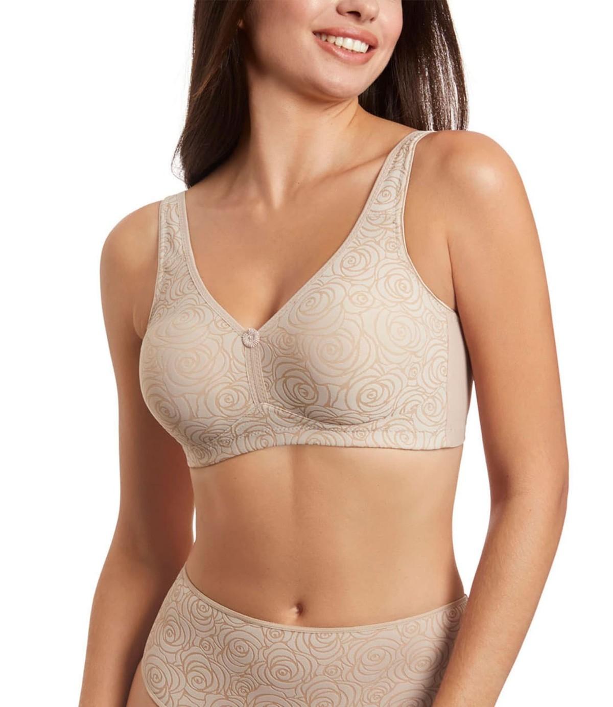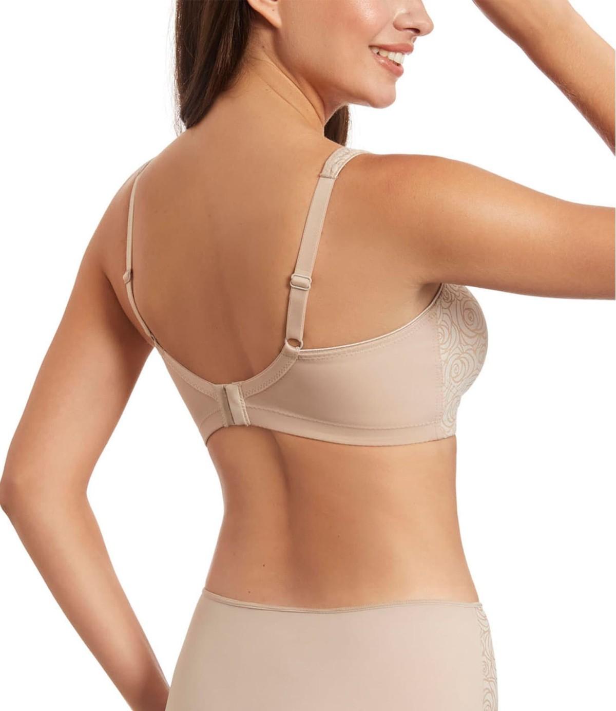 Sujetador sin aros y sin relleno. Fabricado con un elegante tejido estampado y un sutil escote en forma de V. Las bandas laterales son de un ancho calculado para proporcionar el ajuste perfecto y cubrir imperfecciones. Copa C