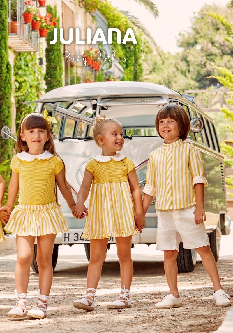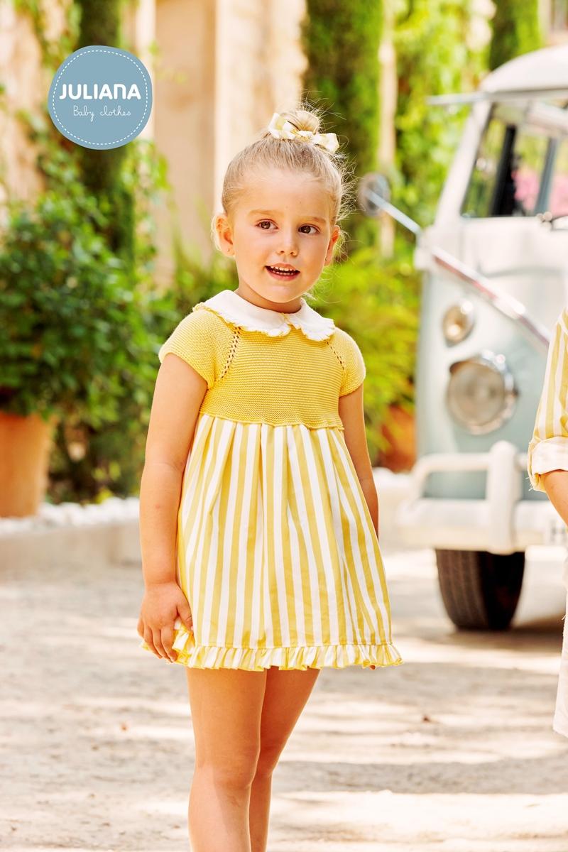 Vestido bebé niña combinado rayas JULIANA Limón