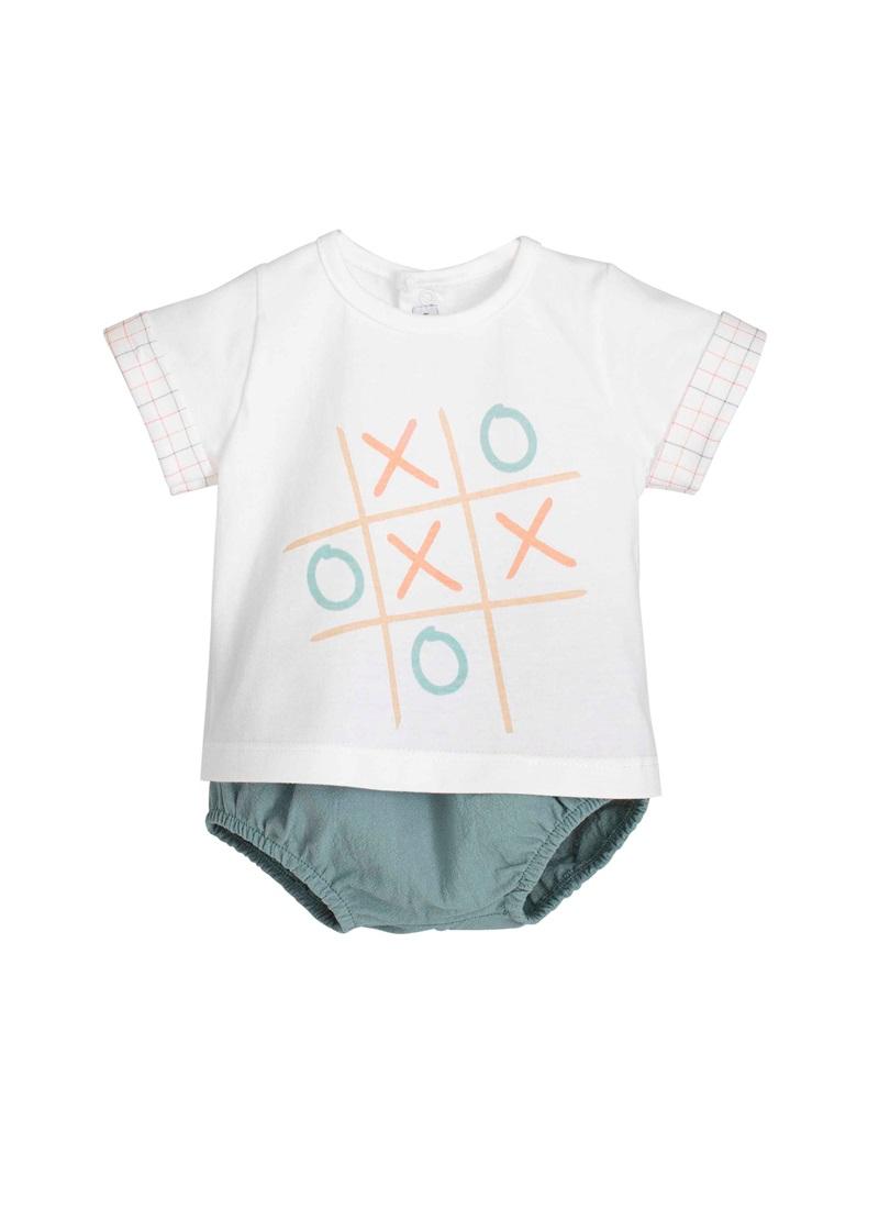 Conjunto bebé niño, camiseta manga corta y pololo estampado de la Familia Mumbai