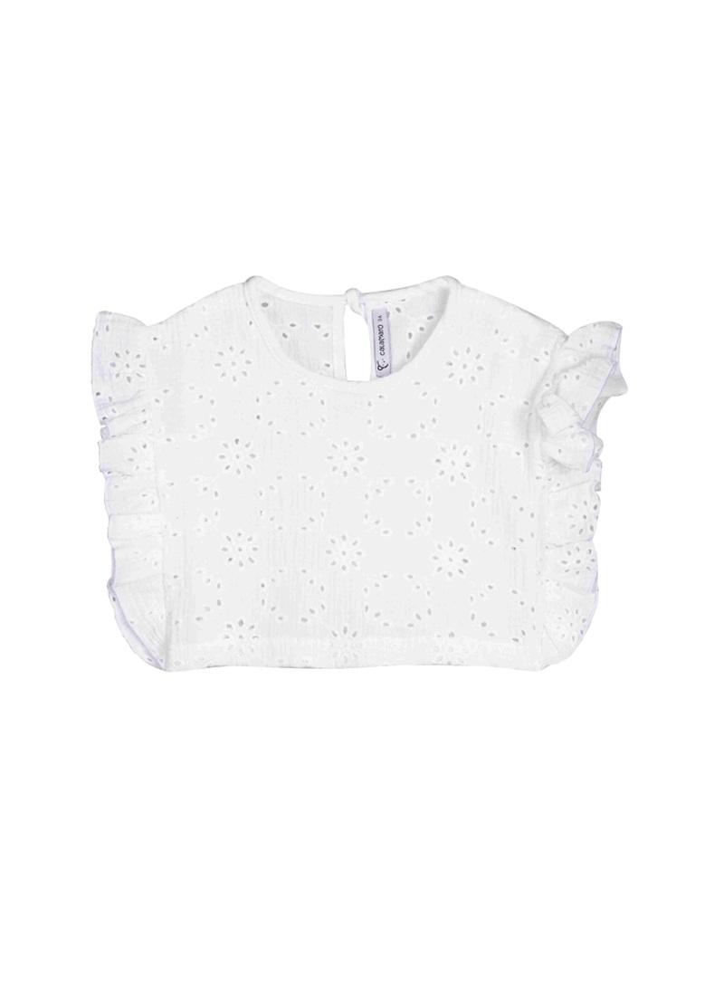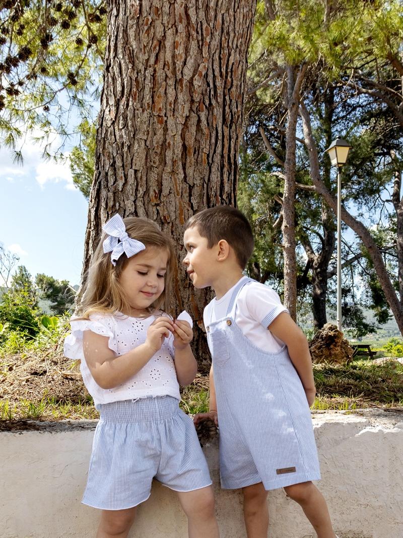 Conjunto niña, blusa y pantalón corto con estampado multirayas de la Familia KERALA