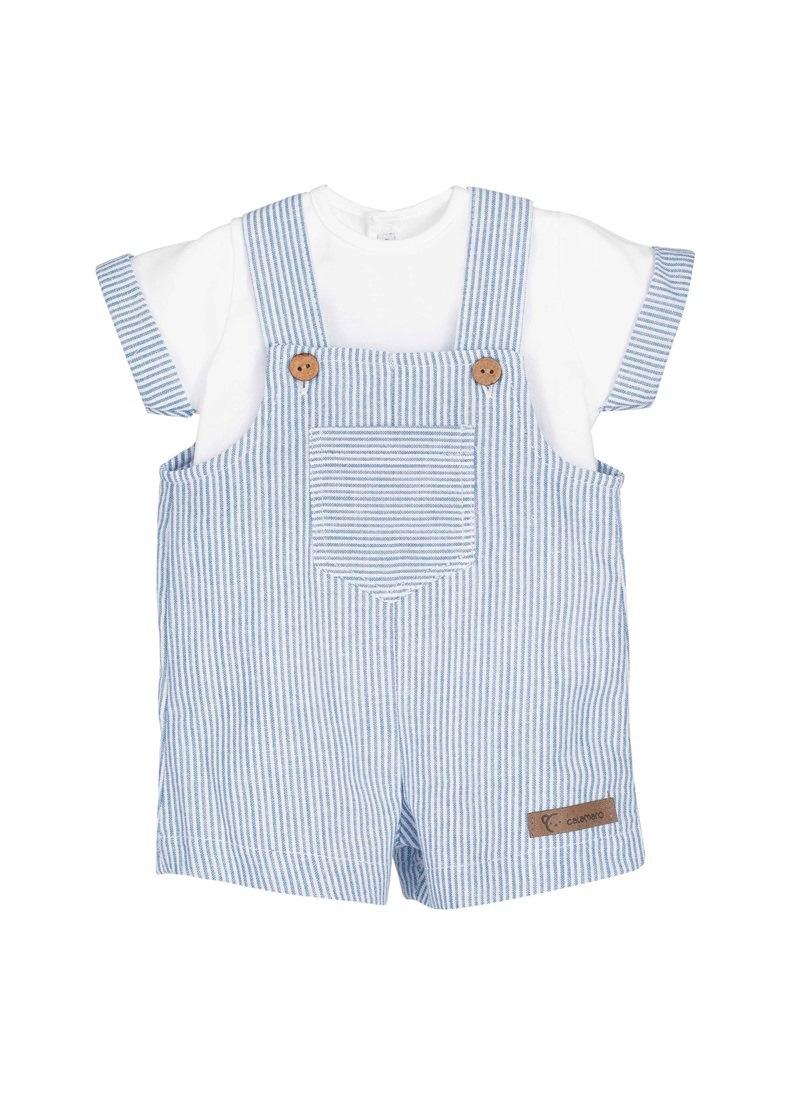 Conjunto Peto bebé niño 2 piezas, camiseta manga corta y peto con estampado multirayas de la Familia KERALAComposición: 100% Algodón