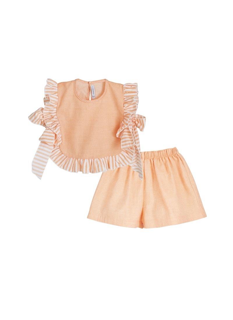 Conjunto niña, Top blusa con volantes y lazadas en laterales y pantalón corto de la Familia DELHI
