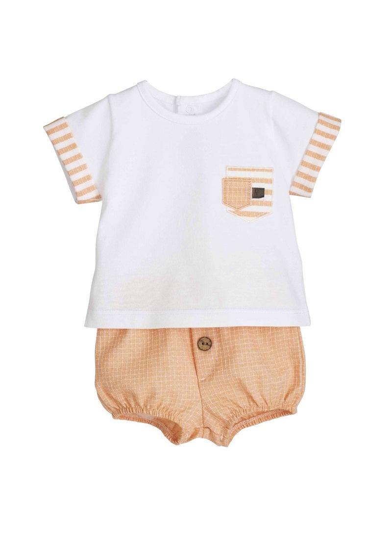Conjunto bebé niño, camiseta manga corta con bolsillo y pololo con estaampado de la Colección Delhi