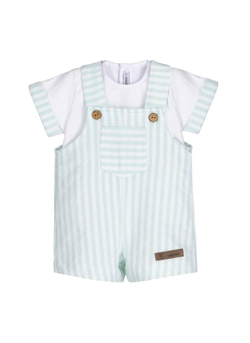 Conjunto Peto bebé niño 2 piezas, camiseta manga corta y peto con estampado de rayas de la Familia BUNDIComposición: 100% Algodón