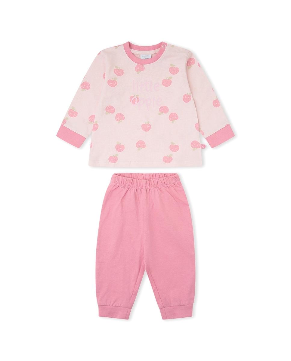 Pijama bebé niña en dos piezas estampado en algodón fino, con terminaciones en puño en mangas y bajo pantalón.