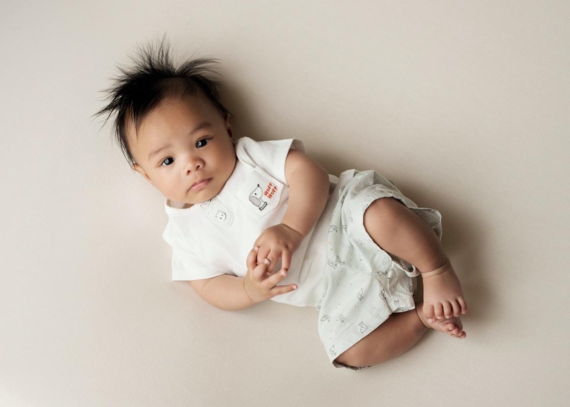 Conjunto de bebé niño, Camiseta manga corta con botones decorativos y bolsillo, cuello redondo ribeteado y cierre trasero por botones de presión. Pantalón corto estampdo, con goma en cintura y bolsillos