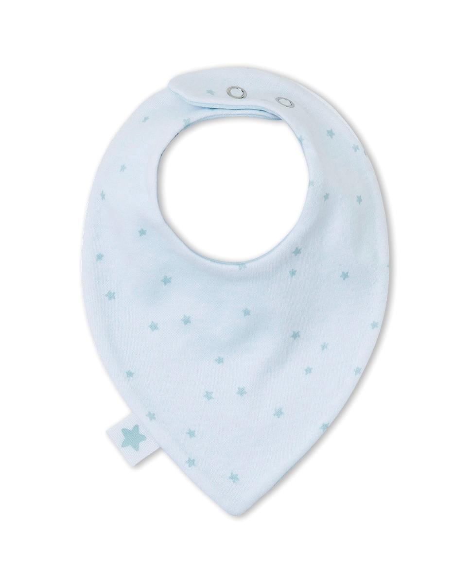 Babero Bandana bebé reversible en tejido de algodón estampado. Cierre con click, con dos posiciones para ajustar.Color: Celeste