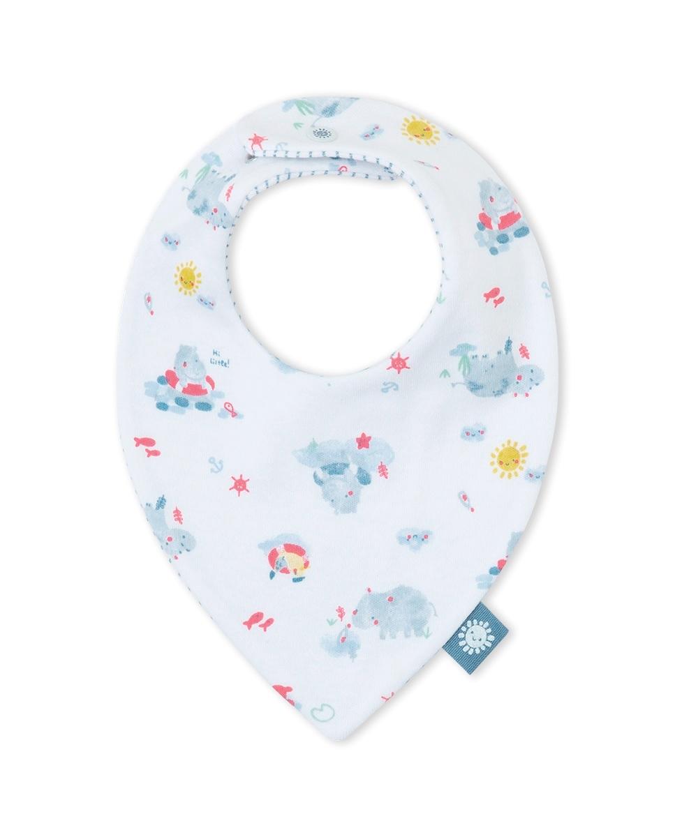 Babero Bandana bebé reversible en tejido de algodón estampado. Cierre con click, con dos posiciones para ajustar.Color: Blanco