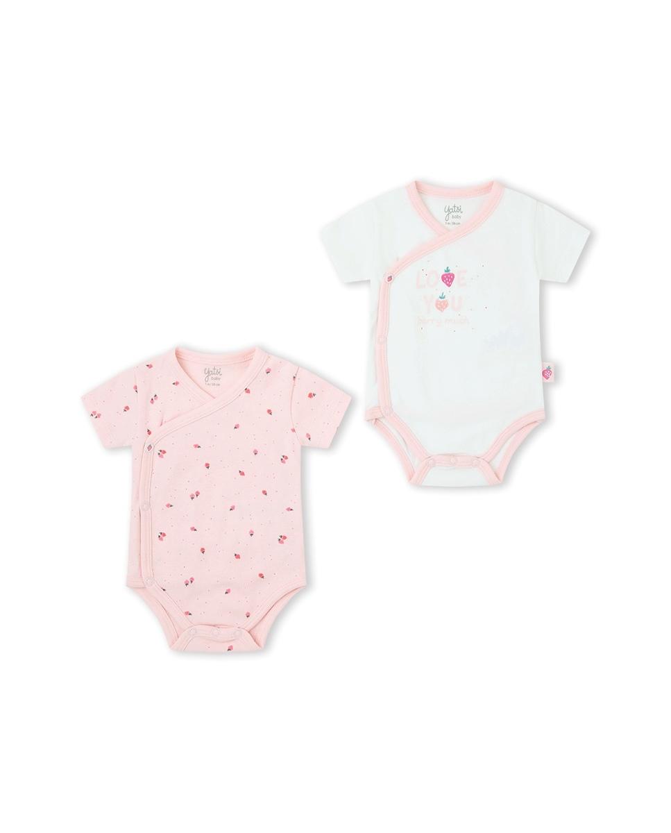 Pack 2 bodys cruzados de manga corta para bebé niña.