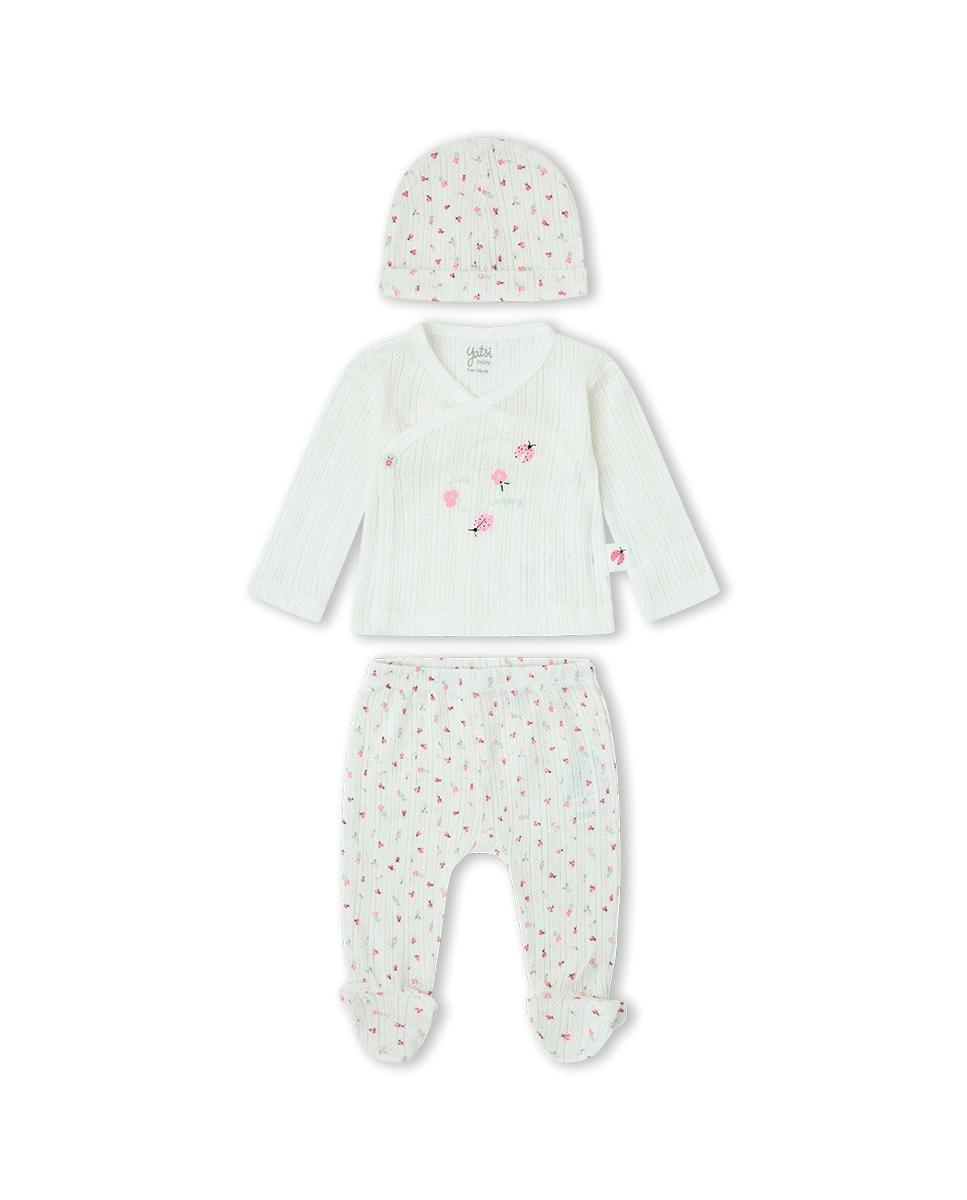 Conjunto polaina bebé niña primera puesta de 3 piezas en algodón fino calado para primavera