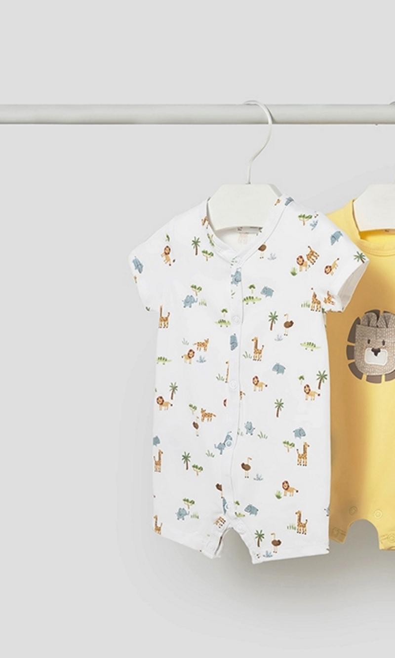 Pijamas de manga corta para bebé con cuello redondo.Botones a presión en la entrepierna para facilitar la puesta de la prenda. Suave tejido de algodón elástico. Se venden por separado