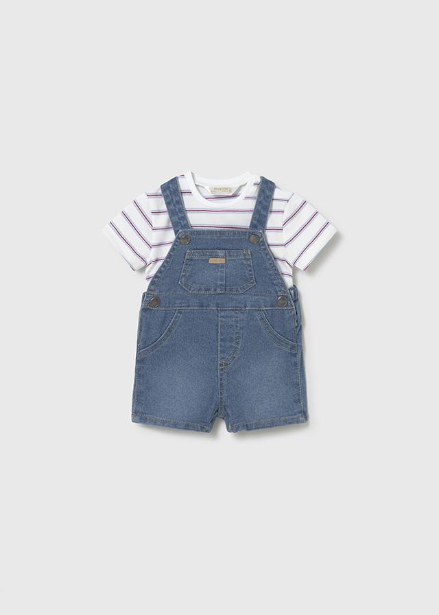 Conjunto peto para bebé niño, camiseta manga corta y peto corto vaquero
