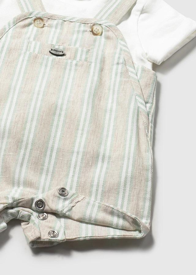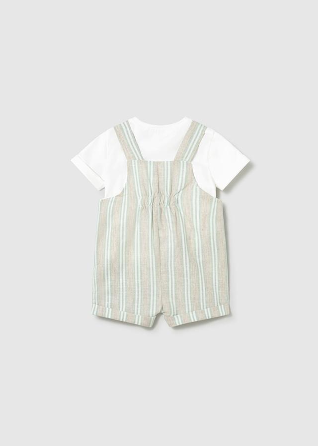 Conjunto de camiseta con peto a juego para recién nacido. Camiseta de manga corta para recién nacido. Cuello redondo. Botones en el hombro para facilitar la puesta. Original pantalón peto para recién nacido. Cierre con botones a presión