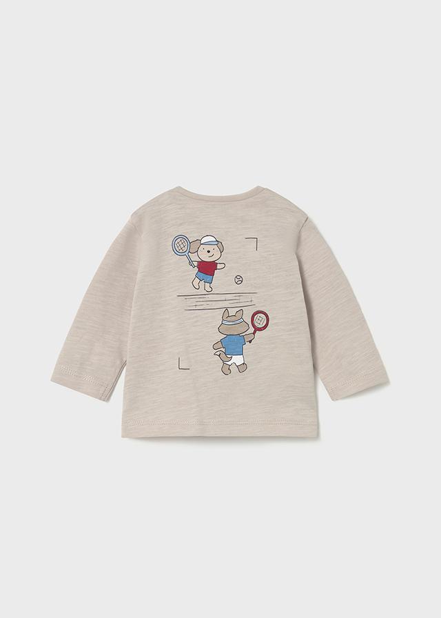 Camiseta manga larga para bebé niño, bolsillo en delantero lateral y dibujo en espalda
