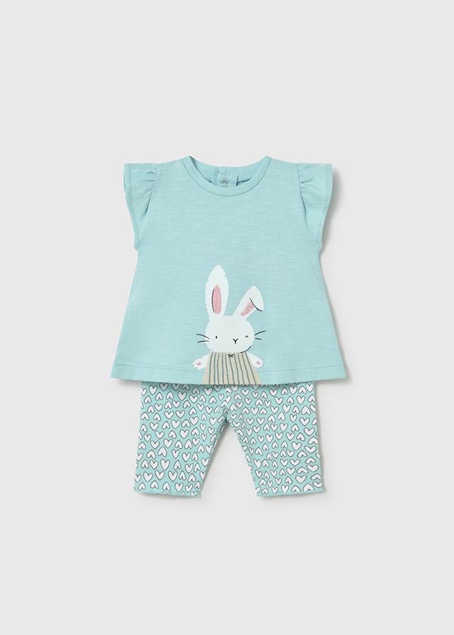 Conjunto dos piezas para bebé niña. Camiseta sin mangas con diujo en delantero. Cierre con botones a presión en espalda, Legging estampado.