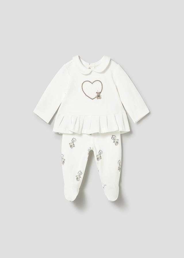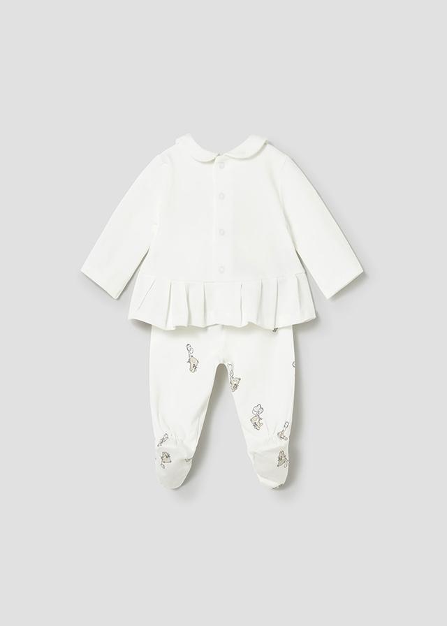 Conjunto dos piezas para recién nacida compuesto por una camiseta de manga larga y polaina a juego en algodón fino ideal para primavera