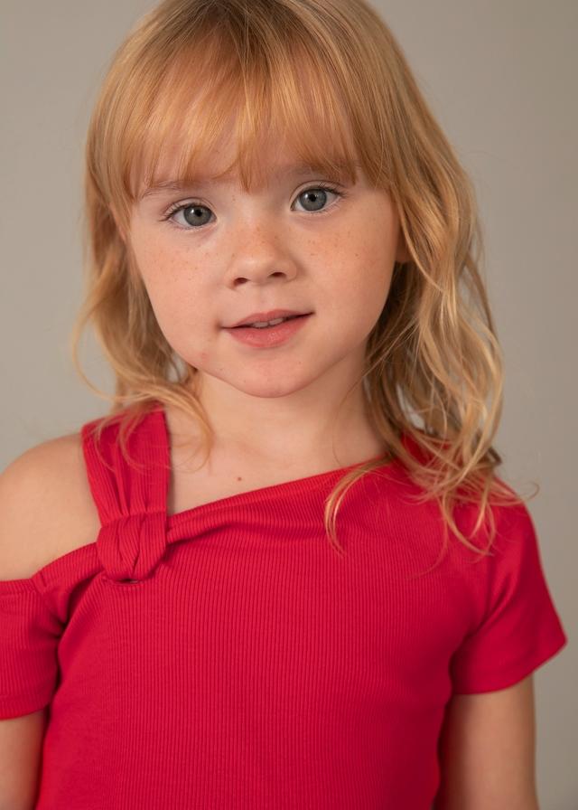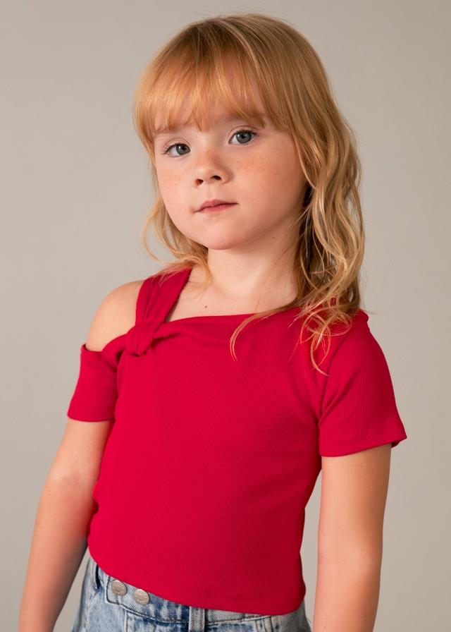 Camiseta lisa asimétrica para niñaColor: Persimon
