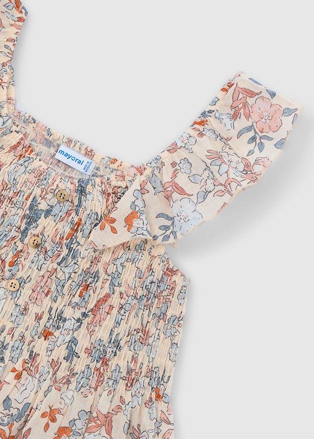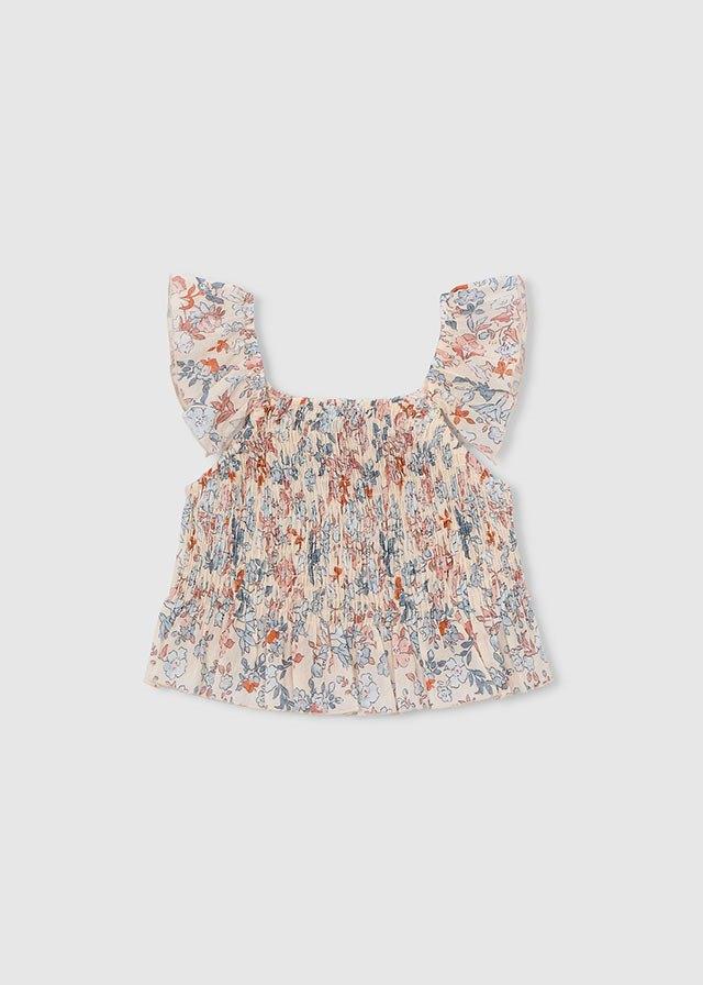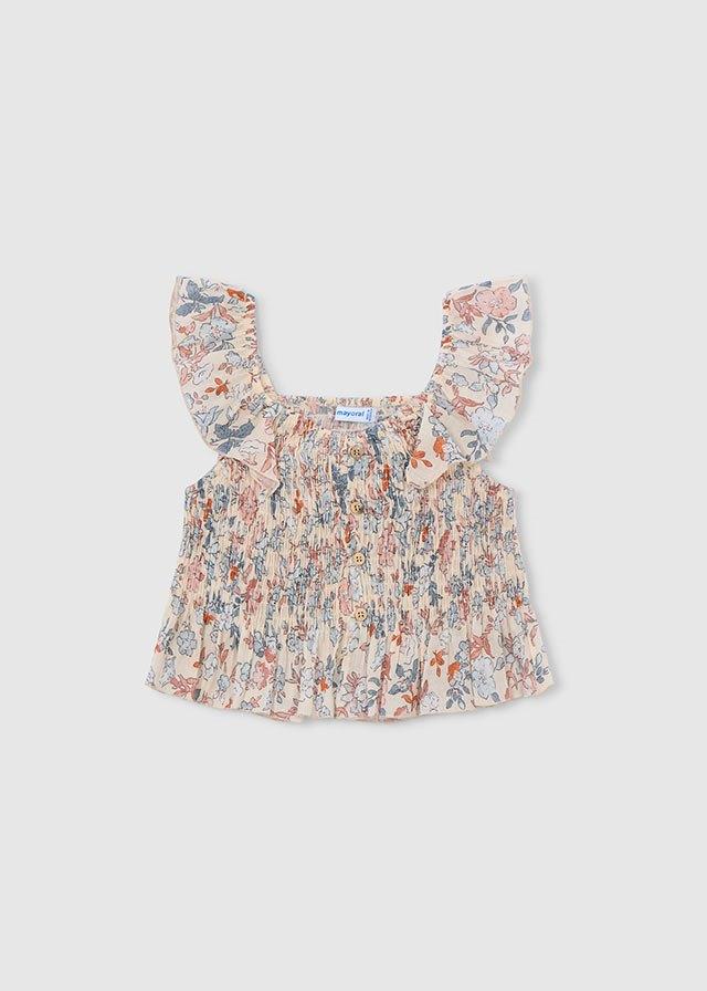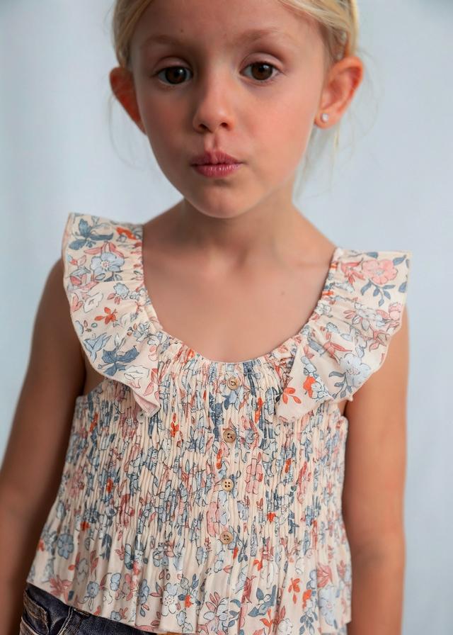 Top en tejido bambula estampado con abertura en delantero para niñaColor: Salmón