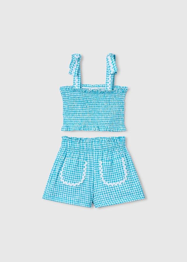 Conjunto vichy niña dos piezas. Top en nido de abeja y Short con bolsillos.Color: Pacífico
