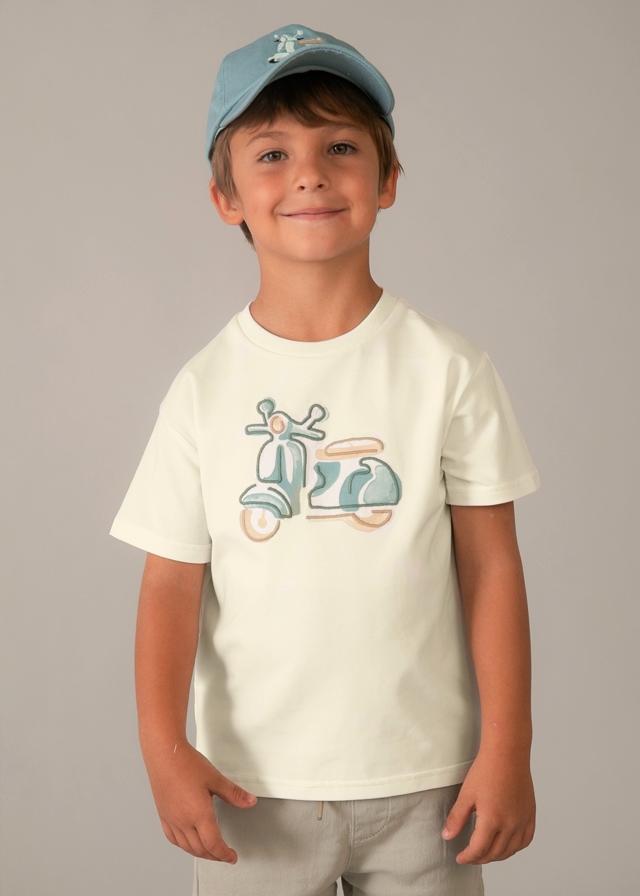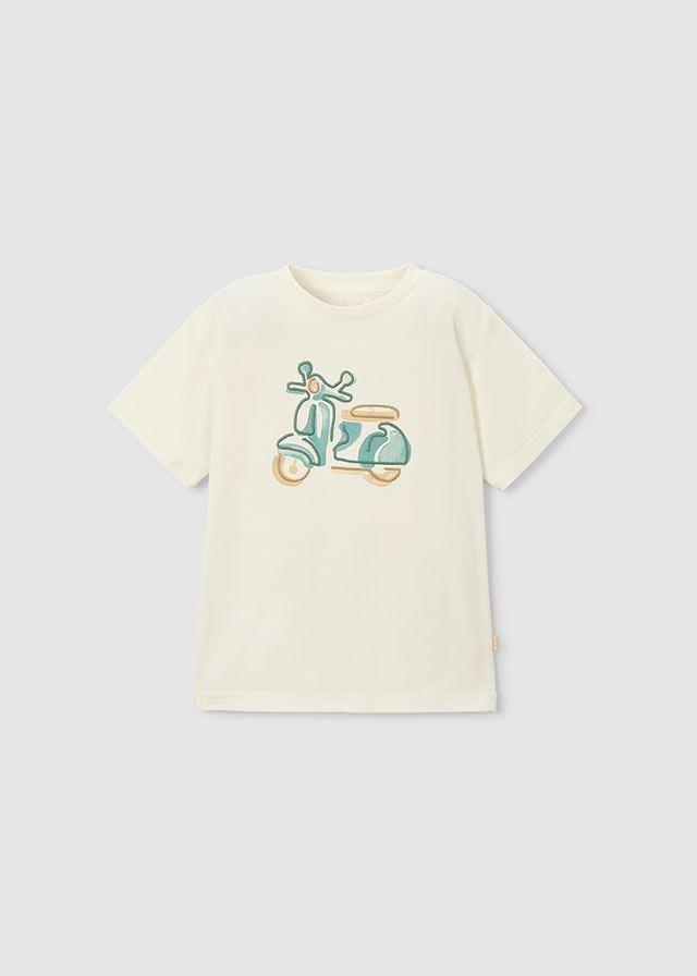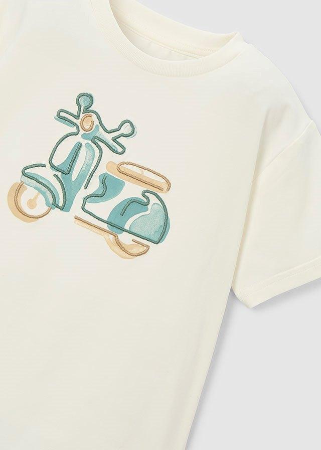 Camiseta niño manga corta con bordado en delantero.Color: Nata