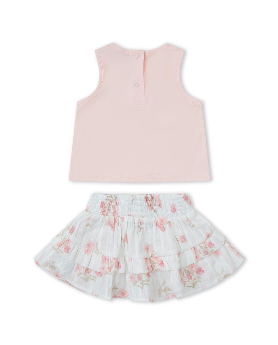 Conjunto para bebé niña, camiseta sin mangas y falda estampada con elástico en cintura