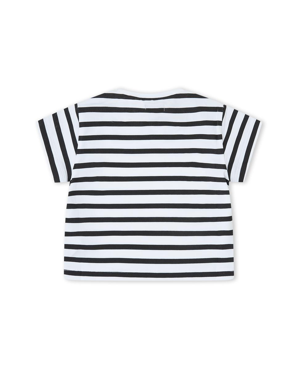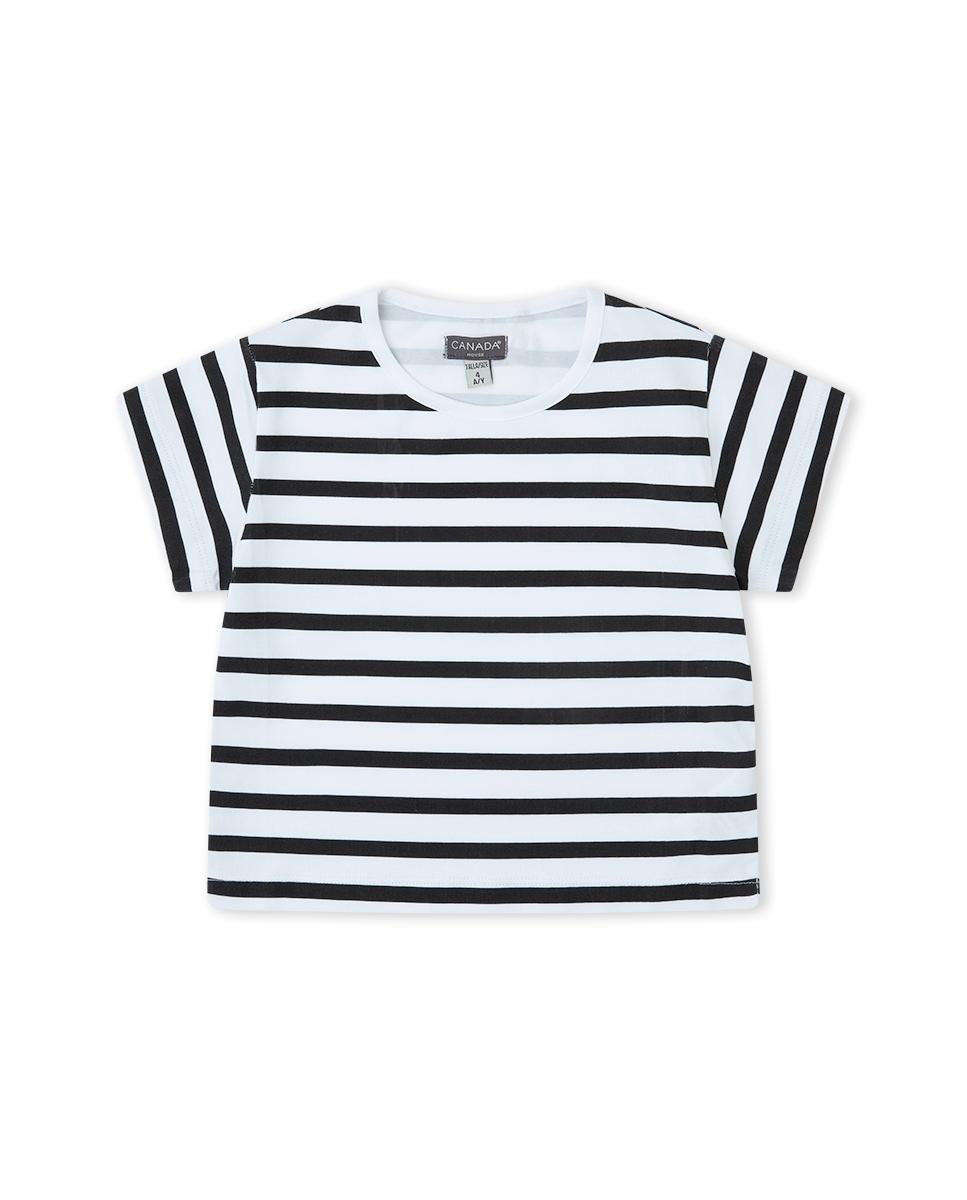 Camiseta de rayas par niña en manga corta. cuello redondo ribeteado